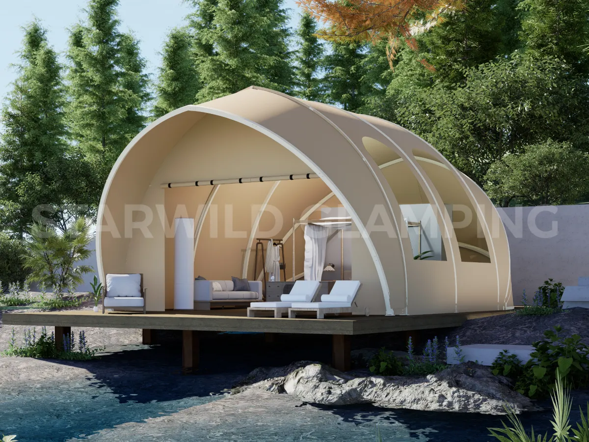 The round structure of dome glamping tents for sale at Starwild not only adds a touch of visual allure to the custom dome tent hotels but also sparks curiosity and a desire for exploration among visitors.